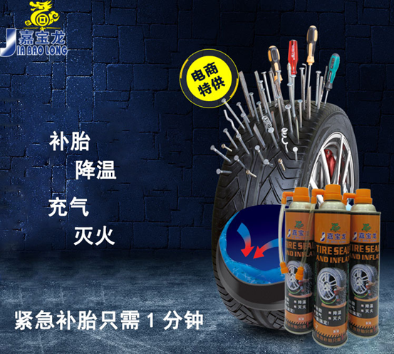 嘉寶龍高級(jí)自動(dòng)充氣補(bǔ)胎液:補(bǔ)胎、充氣、降溫、滅火,一瓶搞定!而且緊急補(bǔ)胎只需一分鐘,一分鐘就能搞定!